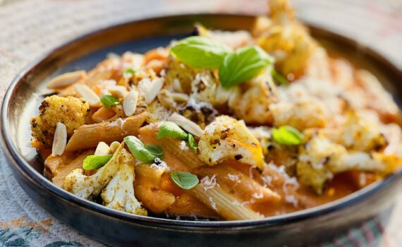 Pasta paprika met gegrilde bloemkool
