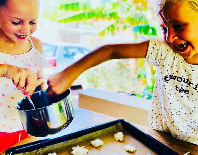 Laat de taart daarna goed afkoelen voor je de frosting erop doet.